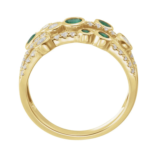14K Yellow Natural Emerald & 3/8 CTW Natural Diamond Ring