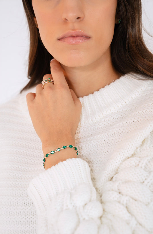14K Yellow Lab-Grown Emerald 7.25" Bracelet
