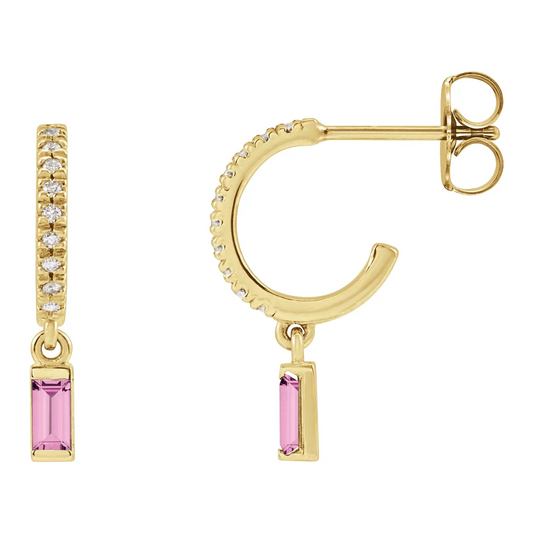 14K Yellow Natural Pink Sapphire & .08 CTW Natural Diamond French-Set Hoop Earri