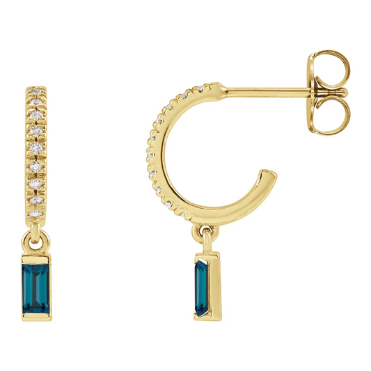 14K Yellow Natural London Blue Topaz & .08 CTW Natural Diamond French-Set Hoop E