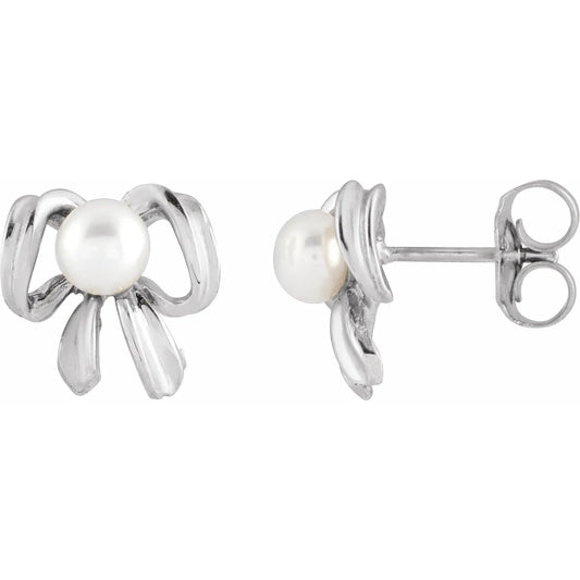 Rhodium-Plated Sterling Silver Cultured White Freshwater Pearl & Imitation White