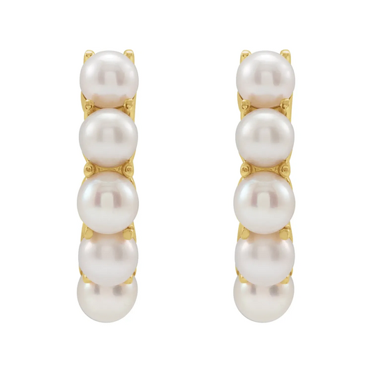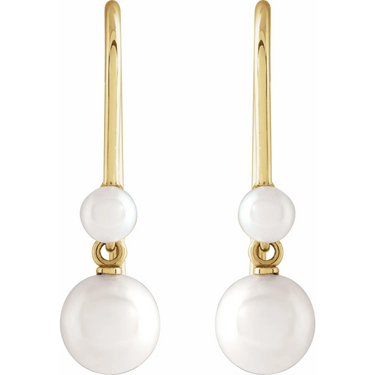 14K Yellow Cultured White Freshwater Pearl Earrings