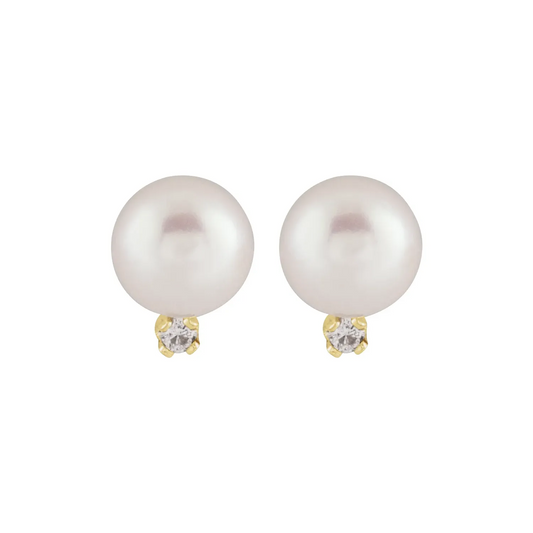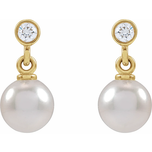 14K Yellow Cultured White Akoya Pearl & .02 CTW Natural Diamond Earrings