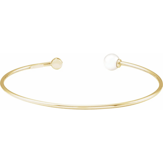 14K Yellow Cultured White Freshwater Pearl & .03 CT Natural Diamond Cuff 7" Bracelet