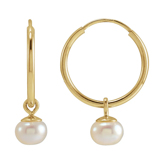 14K Yellow Cultured White Freshwater Pearl 12 mm Endless Hoop Earrings