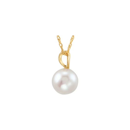 14K Yellow Cultured White Akoya Pearl 18" Necklace