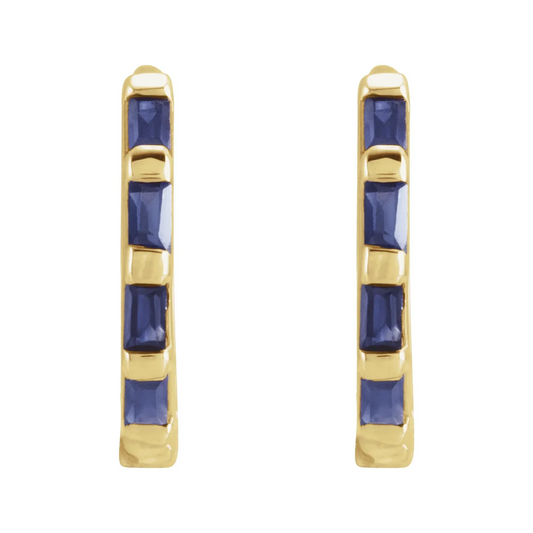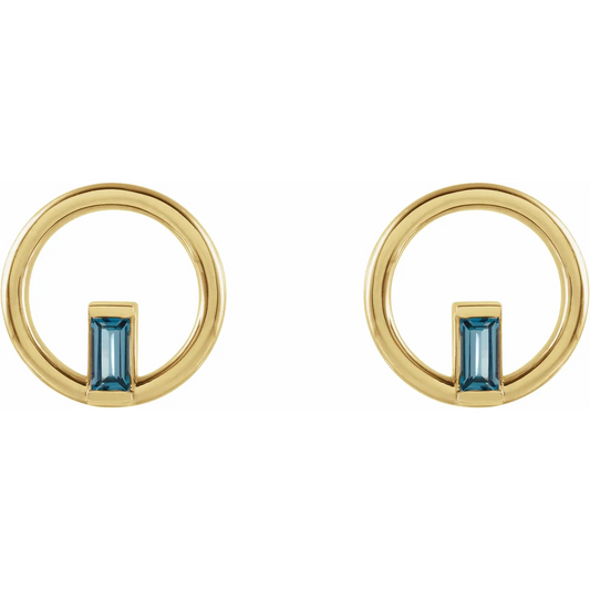 14K Yellow Natural London Blue Topaz Circle Earrings