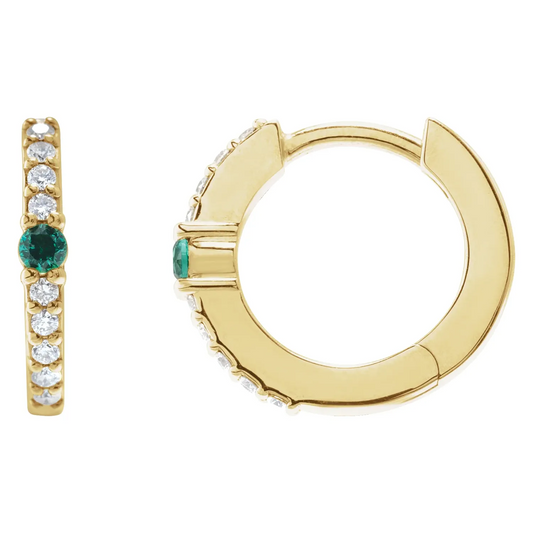 14K Yellow Natural Emerald & 1/8 CTW Natural Diamond 13.6 mm Hoop Earring