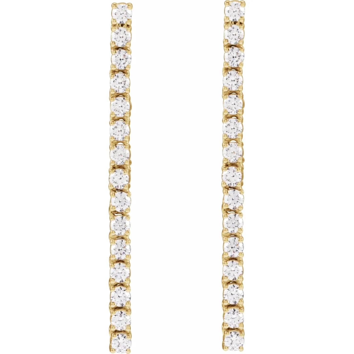 689145 / Earring / Set / Natural Diamond / Round / 1.8 Mm / 14K Yellow / Pair / Friction Backs Included / Polished / 3/4 Ctw Natural Diamond Dangle Earrings