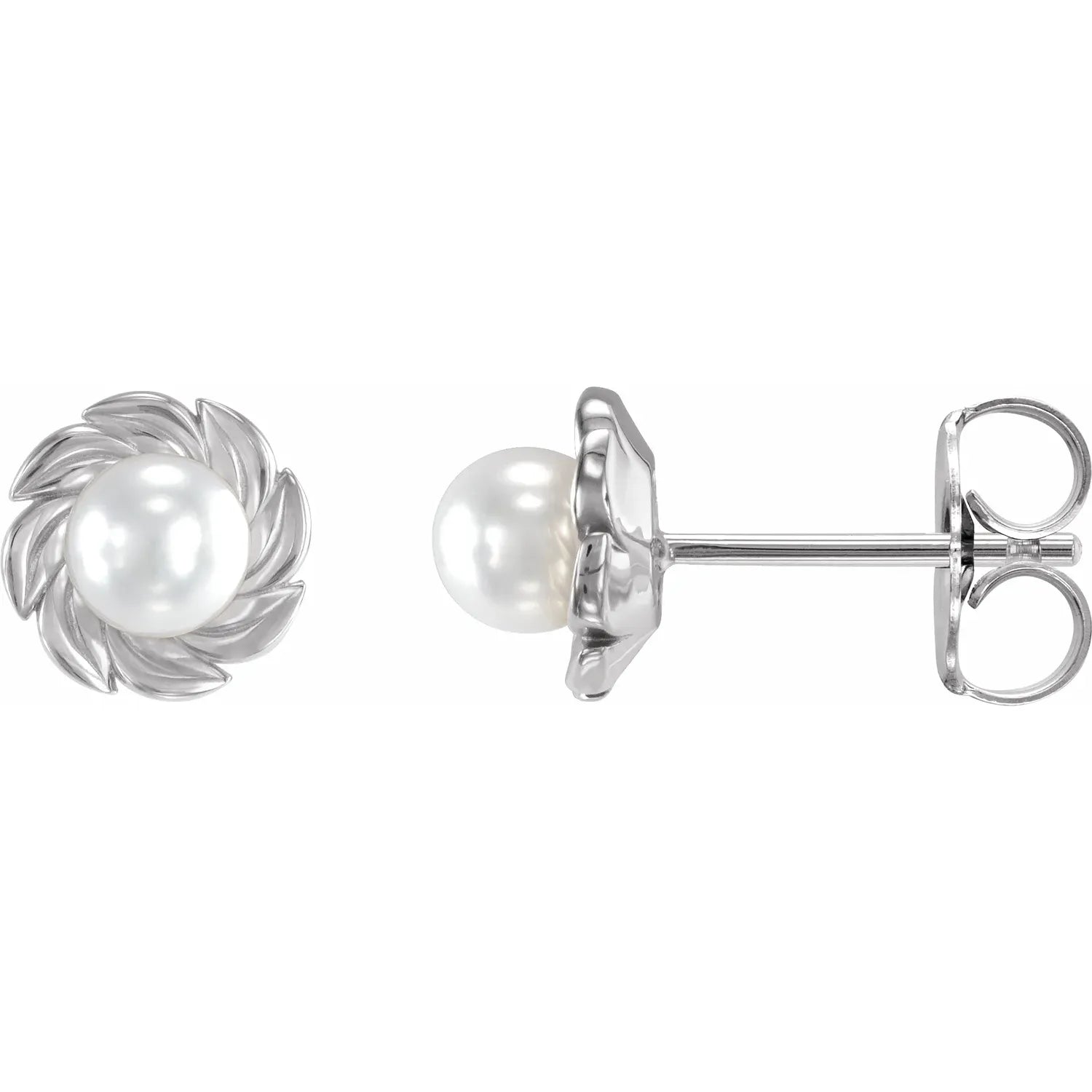 88174 / Earring / Set / White Akoya Pearl / Pearl / 4 Mm / 14K Yellow / Pair / Friction Backs Included / Polished / Cultured White Akoya Pearl Leaf Earrings