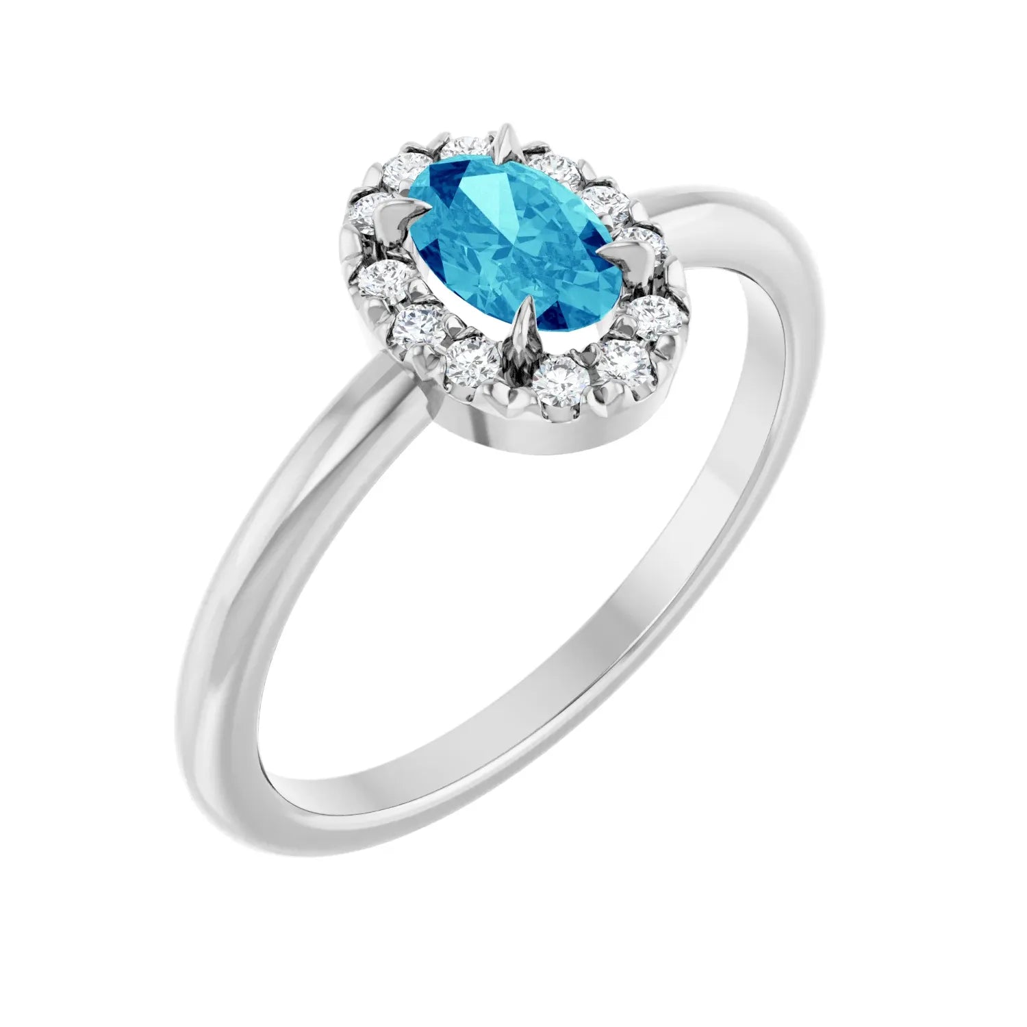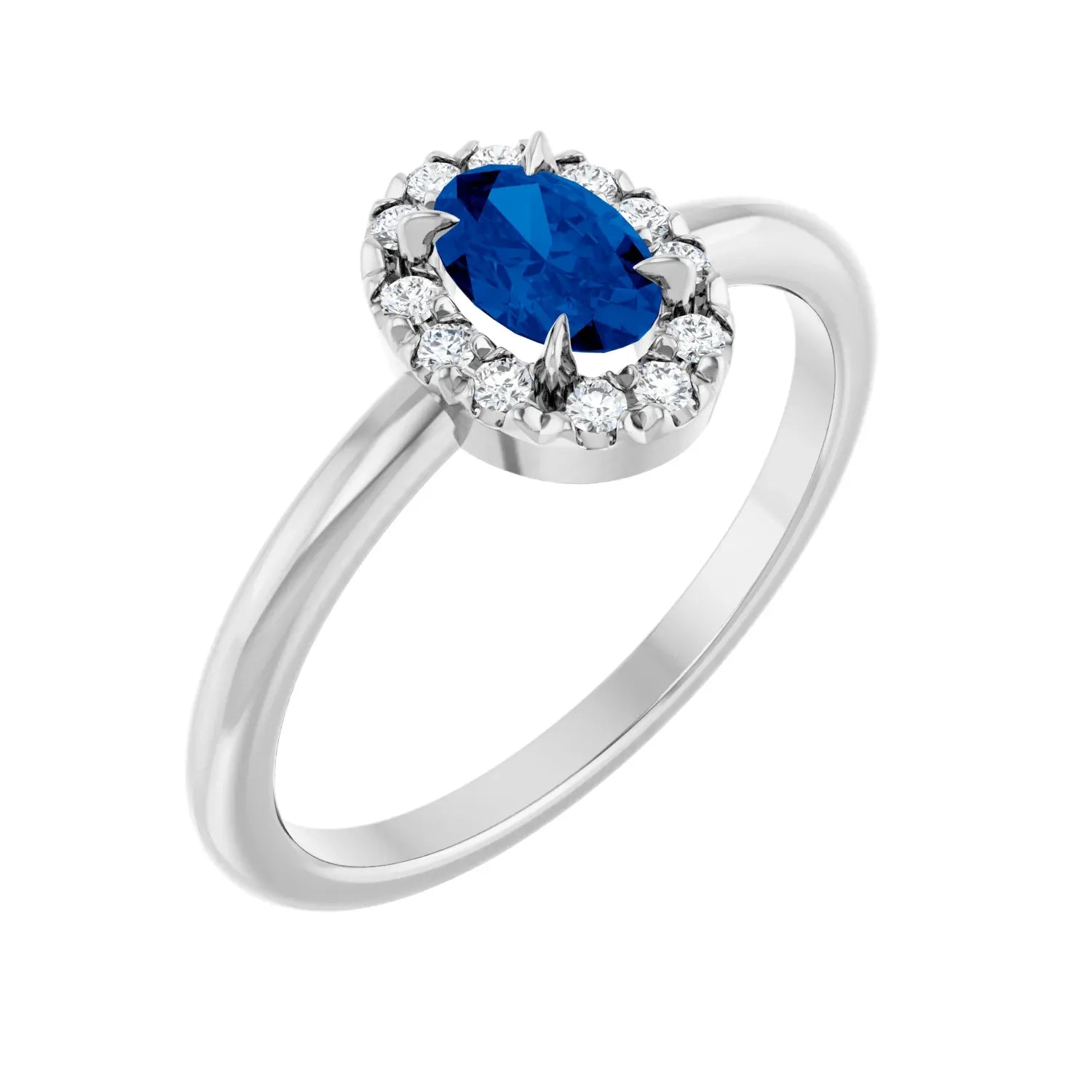 72376 / Ring / Set / 14K / Natural Blue Sapphire / Lab-Grown Emerald / Natural Blue Zircon / Oval / 6 X 4 Mm / Natural Diamond / Polished / Natural Blue Sapphire And 1/10 Ctw Natural Diamond French-Set Halo-Style Ring
