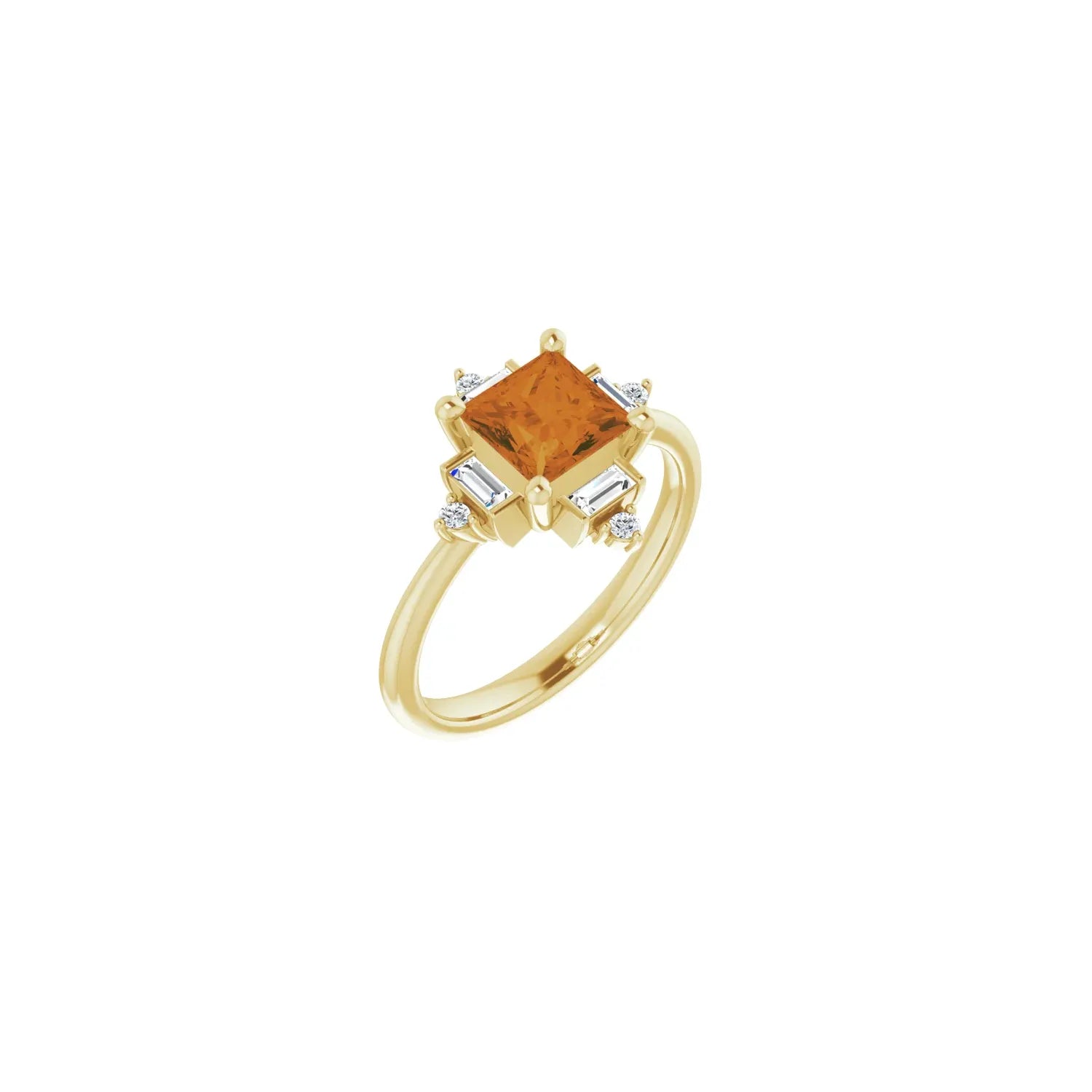 72138 / Ring / Set / 14K Yellow / Natural Citrine / Square / 6 X 6 Mm / Natural Diamond / Polished / Natural Citrine And 1/5 Ctw Natural Diamond Ring