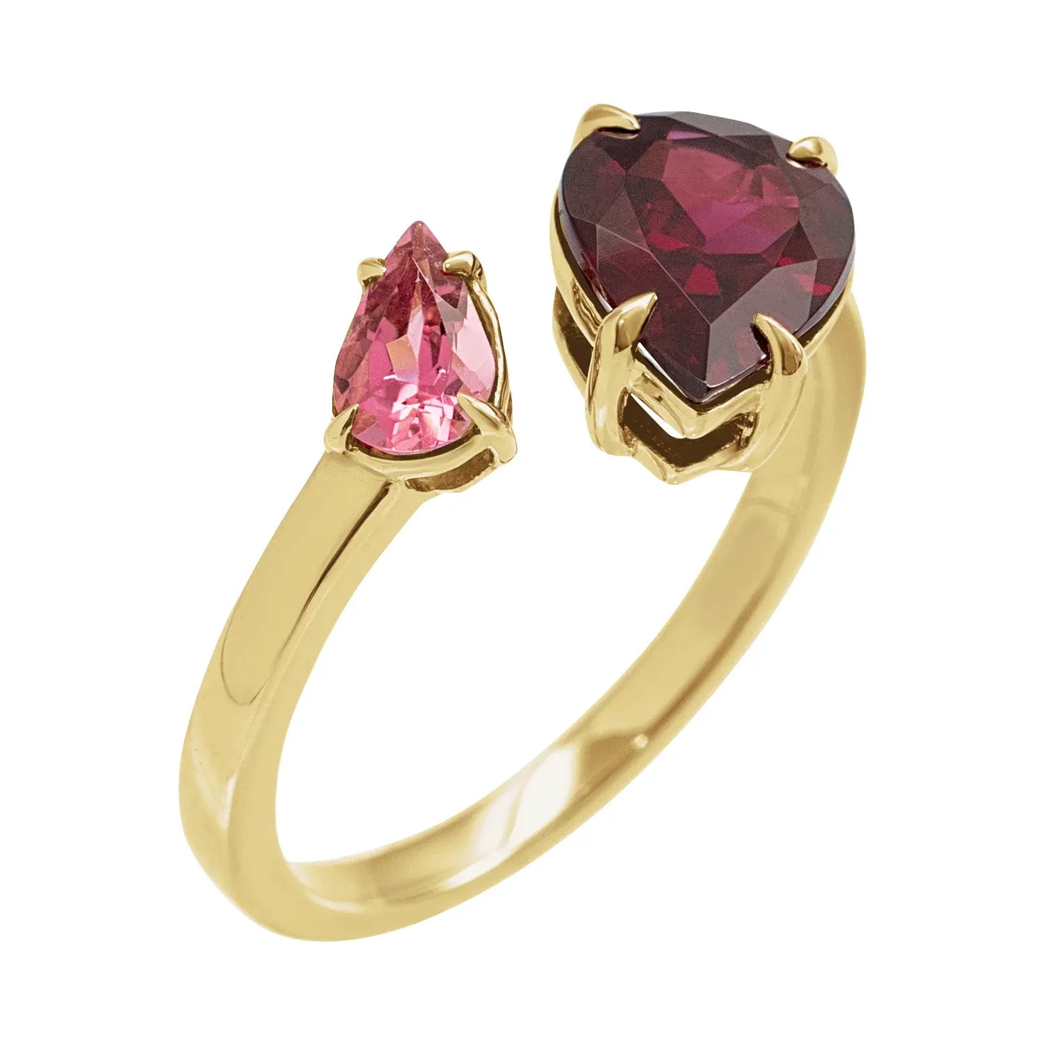 / Ring / Set / 14K / Natural Rhodolite Garnet / Pear / 10 X 7 Mm / Natural Pink Tourmaline / Polished / Natural Rhodolite Garnet And Natural Pink Tourmaline 2- / Ring / Set / 14K / Natural London Blue Topaz / Pear / 10 X 7 Mm / Natural Sky Blue Topaz / Polished / Natural London Blue Topaz And Natural Sky Blue Topaz 2-Stone Ring