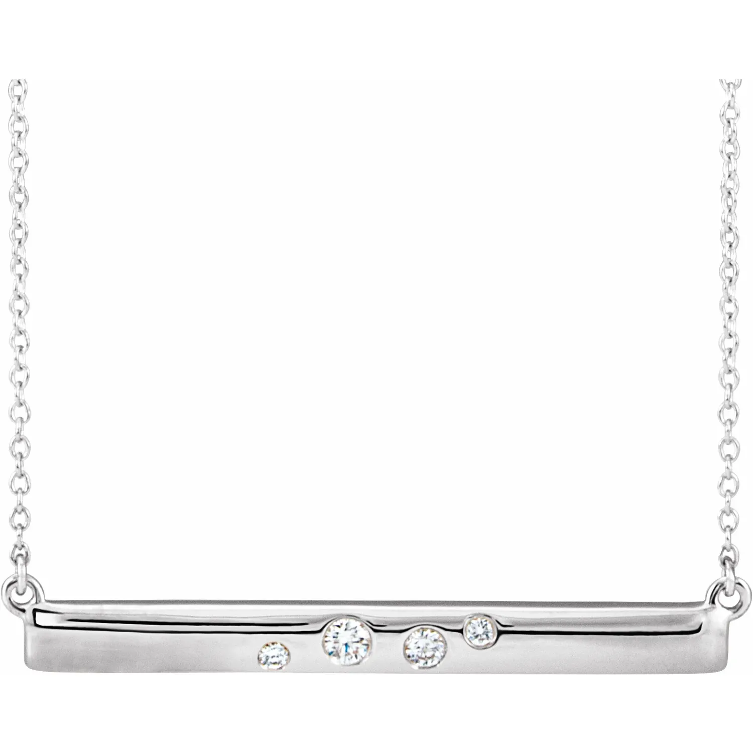 14K White 1/10 CTW Natural Diamond Bar 16-18" Necklace