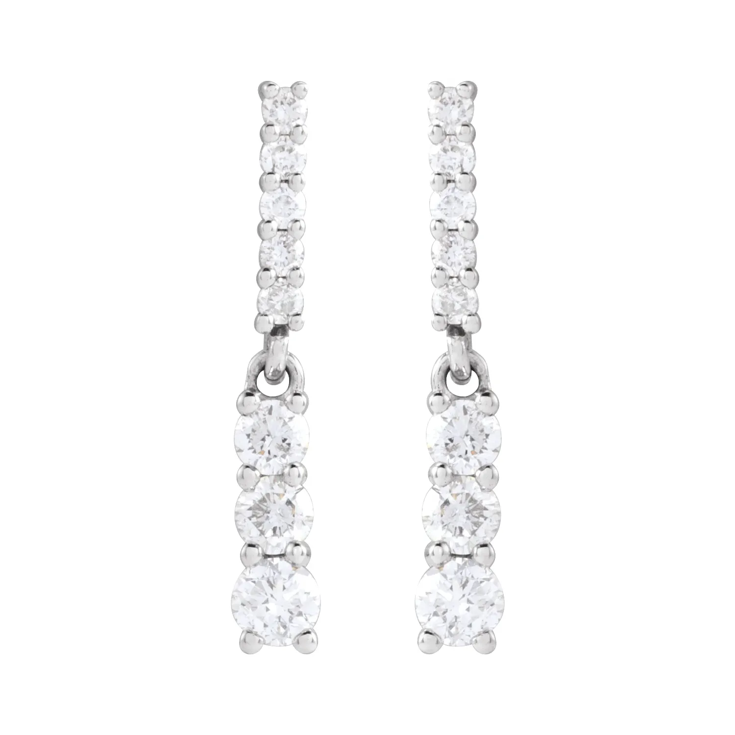 689101 / Earring / Set / Natural Diamond / Round / 2.1 Mm / 14K White / Pair / Friction Backs Included / Polished / 1/4 Ctw Full Cut Natural Diamond Dangle Earrings