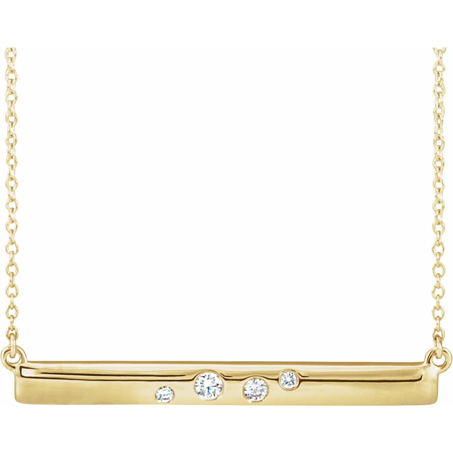 Set / 14K Yellow / Polished / 1/10 Ctw Natural Diamond Bar 16-18 Inch Necklace