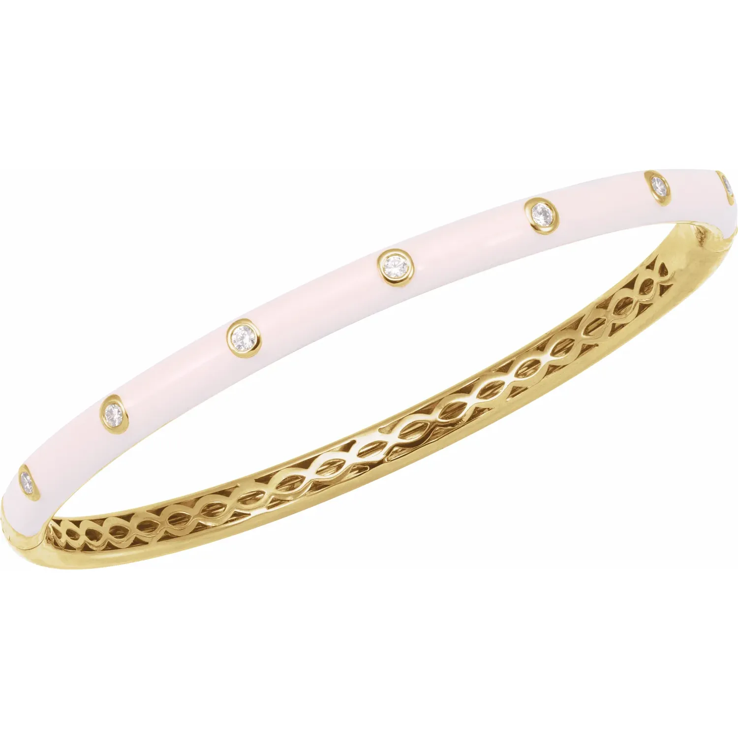 Brc958 / Bracelet / Set / 14K Yellow / Round / 1.9 Mm / Natural Diamond / I1, G-H :: 1/5 Ctw / 7 In / Polished / 1/5 Ctw Natural Diamond Pink Enamel Bangle Bracelet