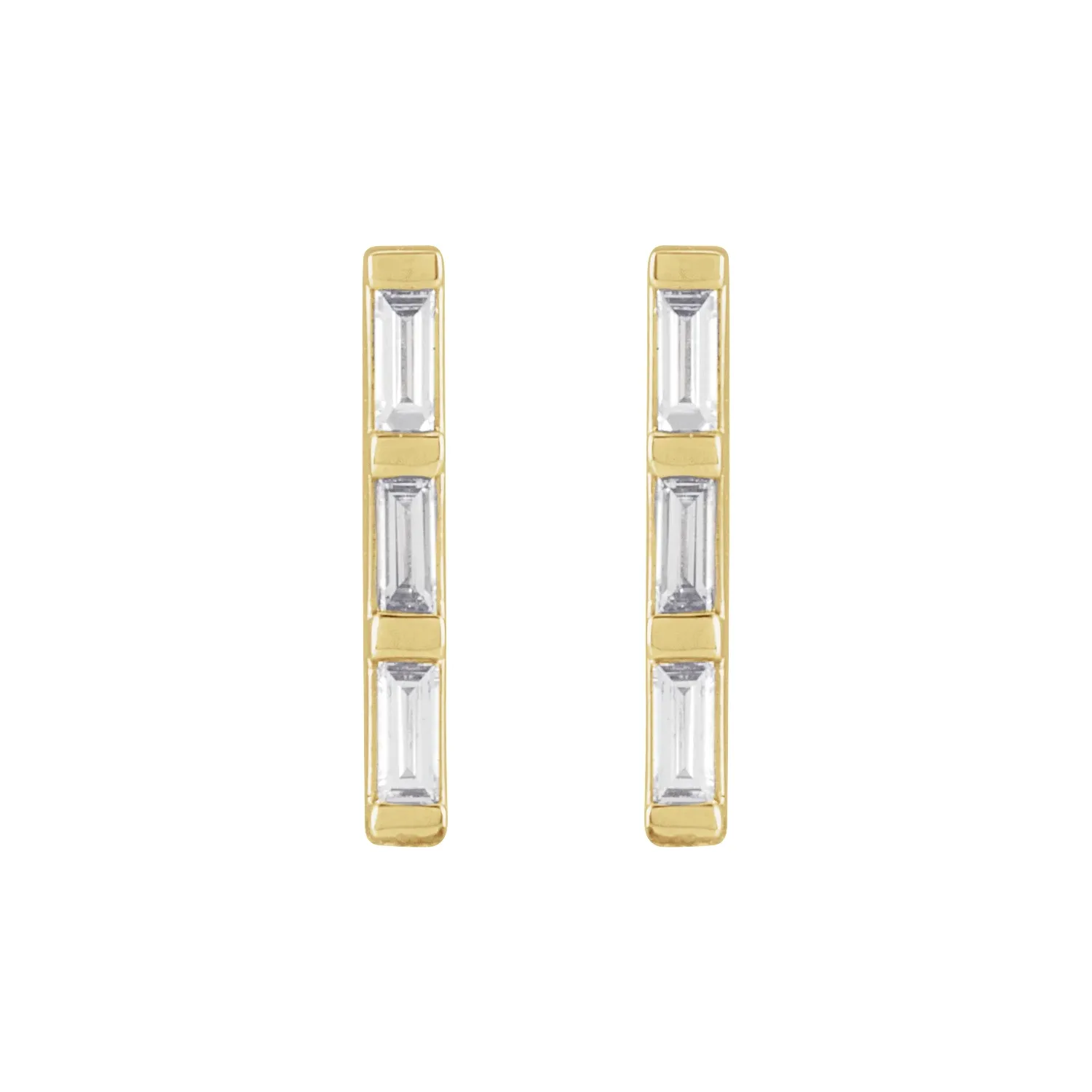 88142 / Set / 14K Yellow / 3-Stone / Natural Diamond / 2.5 X 1 Mm / Si2-Si3, Ghi :: 1/8 Ctw / Pair / Polished / 1/8 Ctw Natural Diamond Bar Earrings