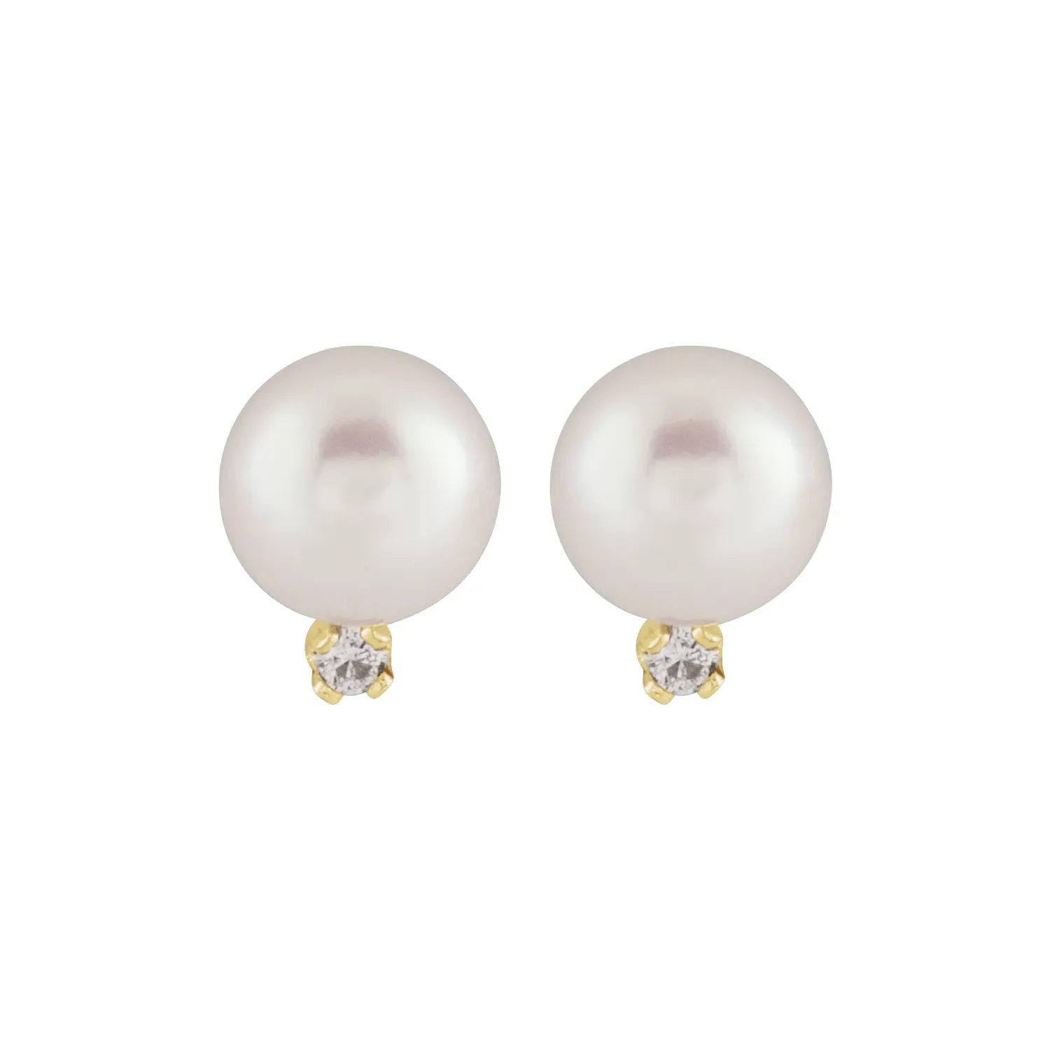 14K Yellow Cultured White Akoya Pearl & .02 CTW Natural Diamond Earrings