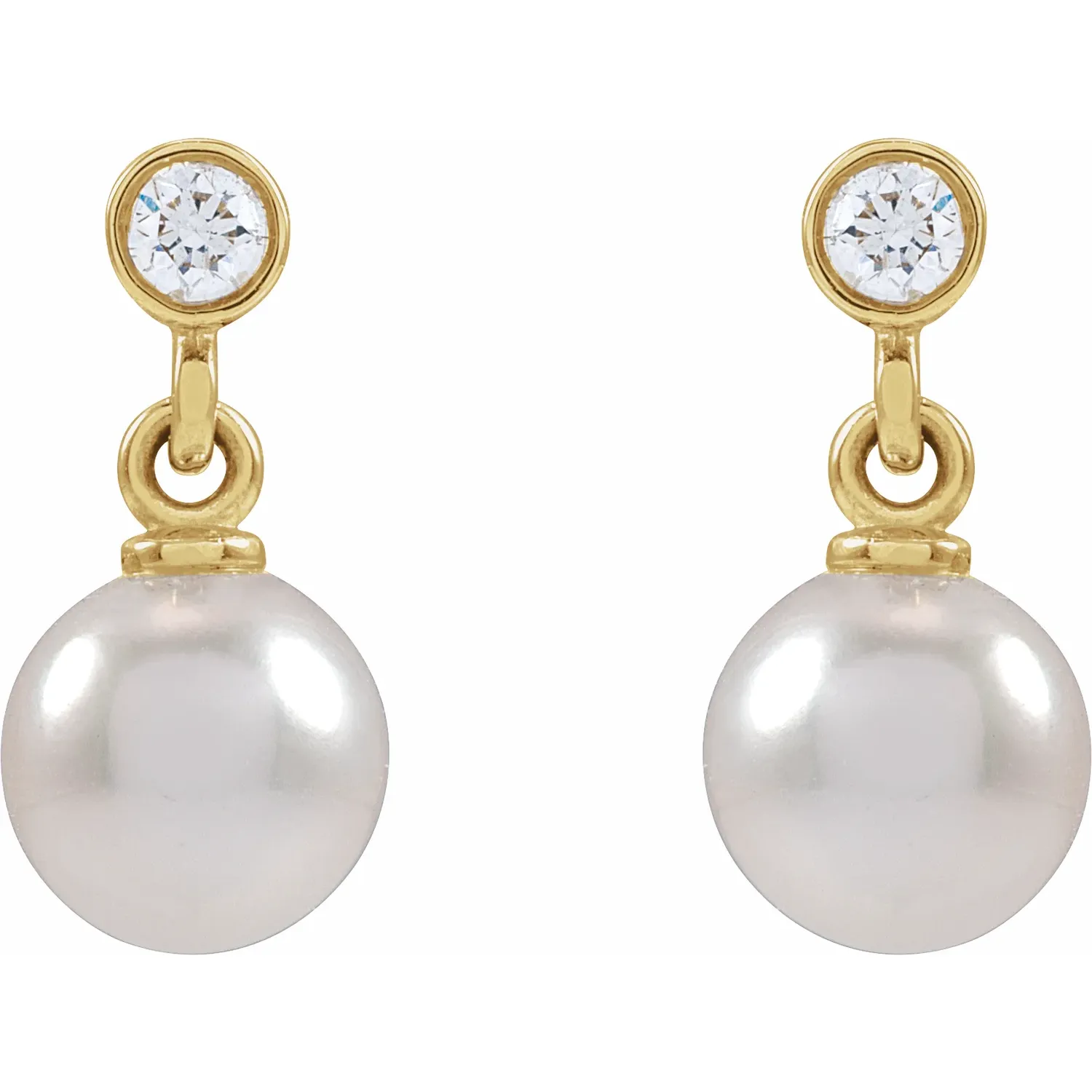 14K Yellow Cultured White Akoya Pearl & .06 CTW Natural Diamond Earrings