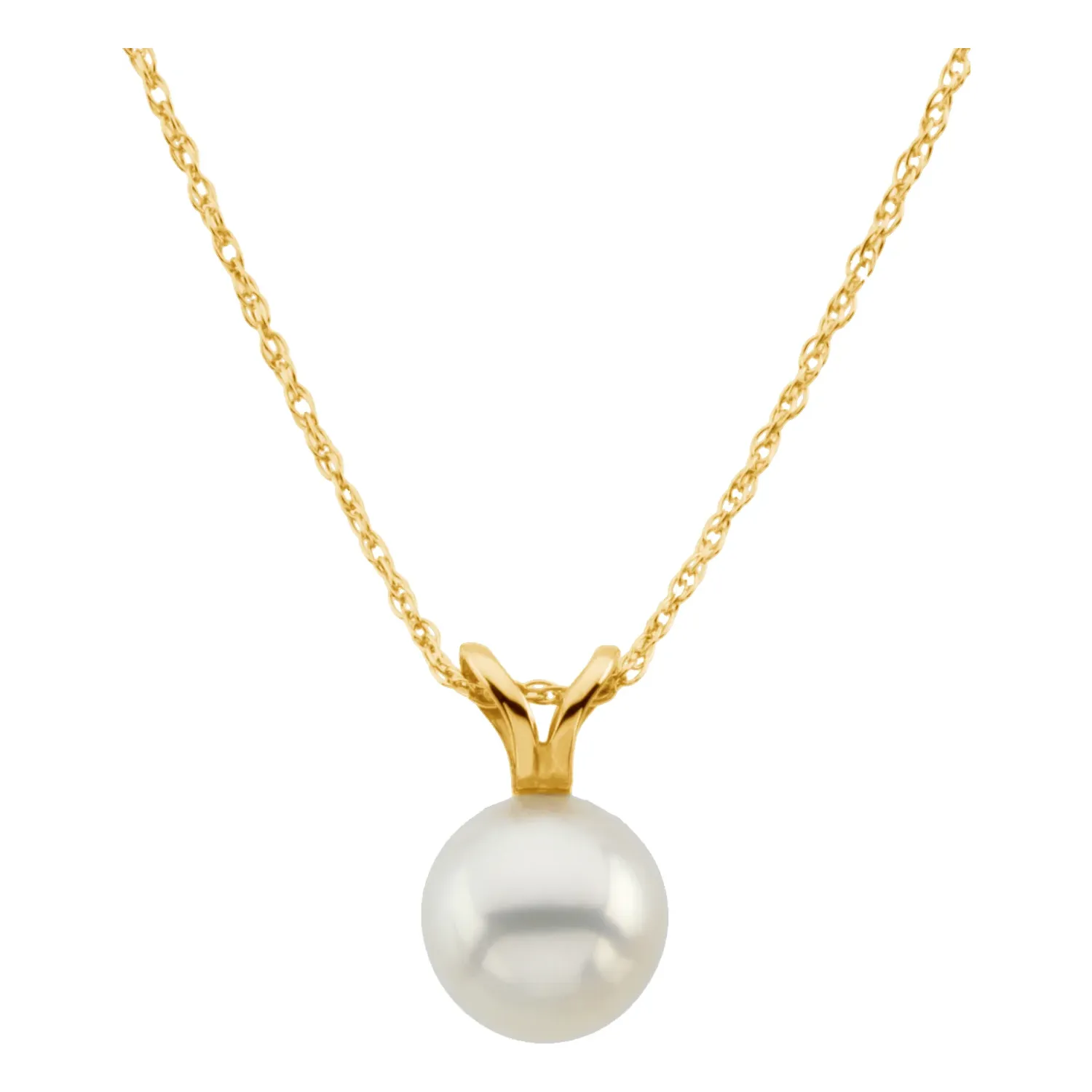 14K Yellow Cultured White Akoya Pearl 18" Necklace