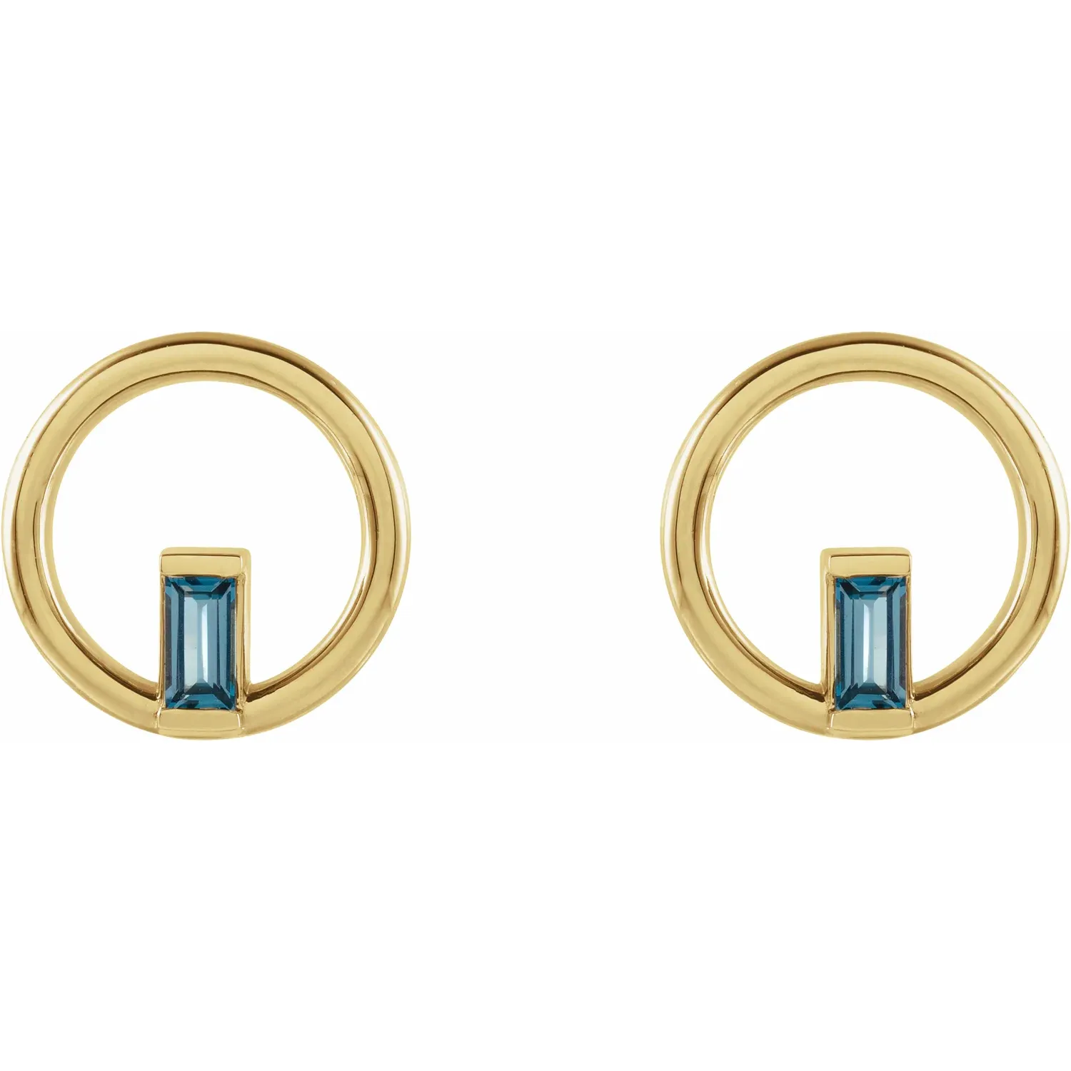 87333 / Earring / Set / Natural London Blue Topaz / Straight Baguette / 4 X 2 Mm / 14K Yellow / Pair / Friction Backs Included / Polished / Natural London Blue Topaz Circle Baguette Stud Earrings
