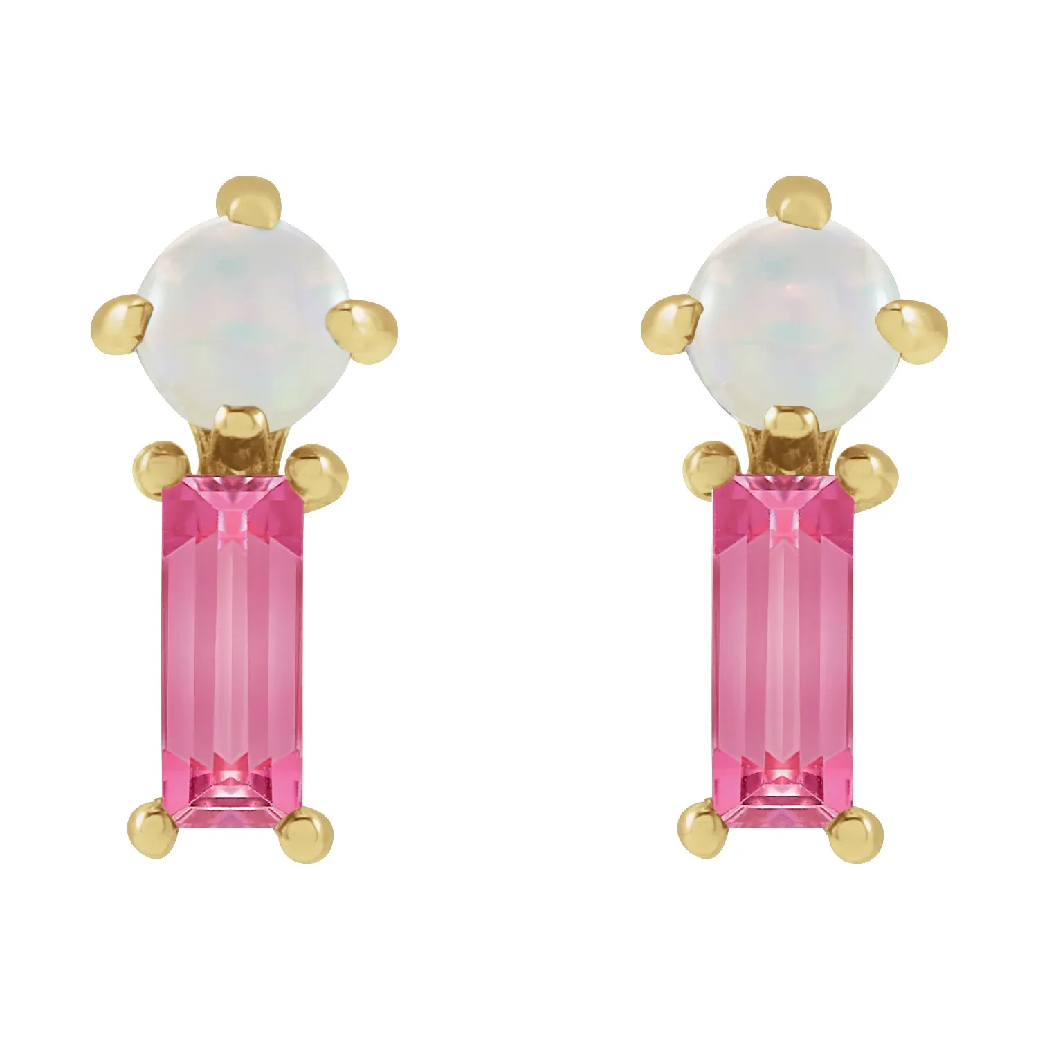 14K Yellow Natural White Opal & Natural Pink Tourmaline Earrings