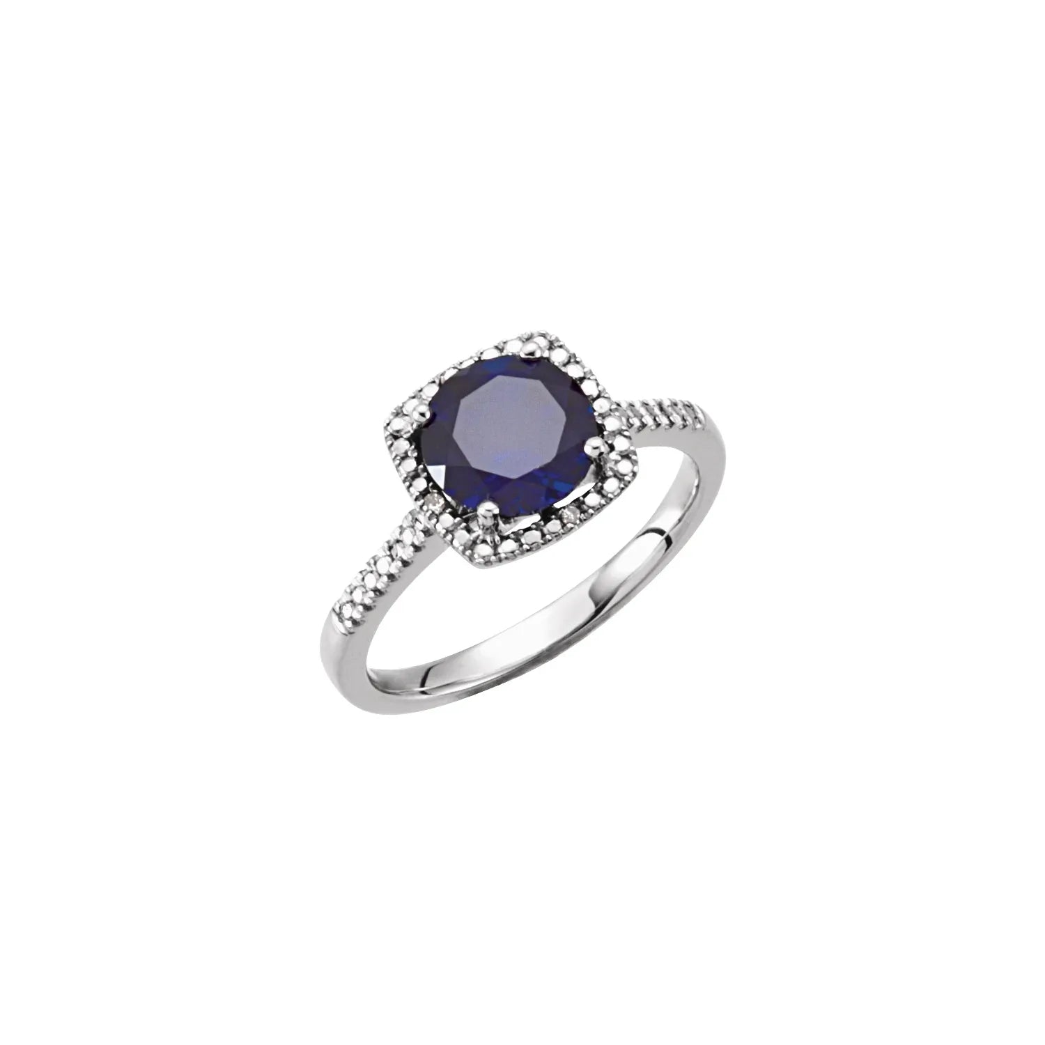 Lab Grown Blue Sapphire & .01 CTW Natural Diamond Ring