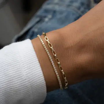 * Made of 925 Sterling Silver * THICK plating of 14k Gold or Rhodium * Available in 6.25", 6.75", or 7" + .5" Extension Chain * Includes 2 Bracelets: 1.75mm tennis bracelet & paperclip bracelet * Nickel-free & Hypoallergenic